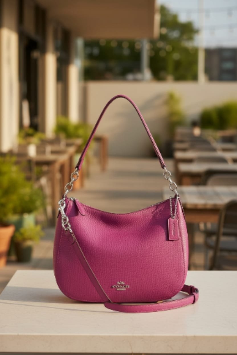 Coach Elle Hobo Raspberry adalah salah satu koleksi favorit karena desainnya minimalis, ringan, dan versatile. Warna Raspberry memberikan sentuhan feminin yang kuat namun tetap elegan, cocok untuk berbagai suasana — dari daily look hingga acara formal.