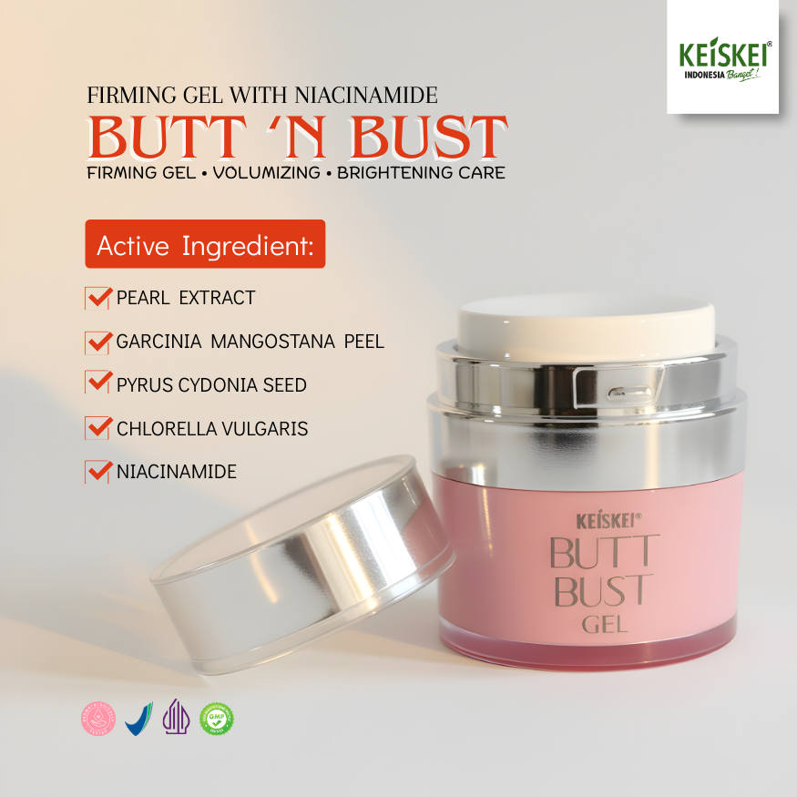 BUTT N BUST Paket Daily Firming adalah paket perawatan tubuh harian dengan double action system yang dirancang khusus untuk membantu mencerahkan kulit, meningkatkan tampilan volume (pembesar visual), mengencangkan, serta membantu menyamarkan stretch marks pada area payudara dan bokong. Kombinasi Lifting Serum + Firming Gel bekerja sinergis untuk memberikan hasil kulit yang tampak lebih cerah, kencang, kenyal, dan terawat maksimal.