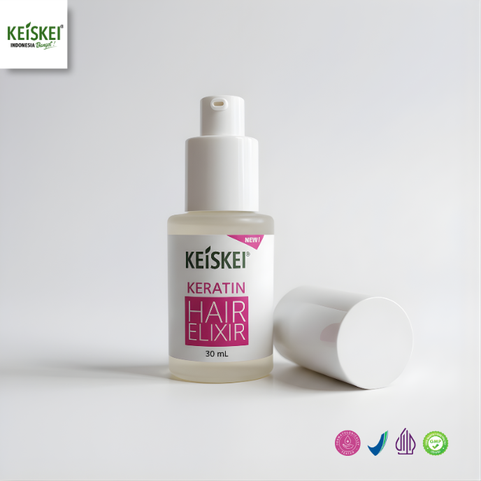 Keiskei Hair Elixir Serum diformulasikan sebagai daily hair treatment yang membantu mengunci kelembapan, memperkuat struktur rambut, serta memberikan kilau alami instan. Ideal digunakan sebelum styling maupun sebagai perawatan malam untuk hasil rambut lebih halus, lembut, dan tampak sehat.