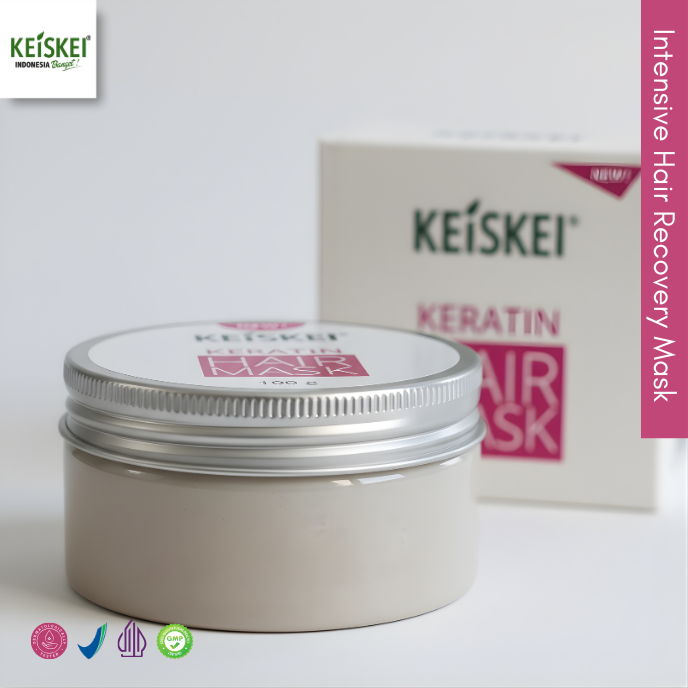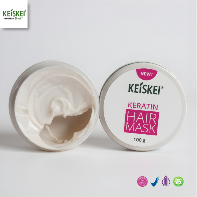 Keiskei Keratin Hair Mask 100gr adalah hair treatment intensif dengan kombinasi keratin terhidrolisis, oil alami premium, probiotik, dan kolagen yang diformulasikan khusus untuk membantu memperbaiki rambut rusak, kering, bercabang, dan rapuh akibat styling, pewarnaan, atau paparan panas. Memberikan hasil rambut lebih halus, lembut, kuat, dan tampak sehat sejak pemakaian rutin.