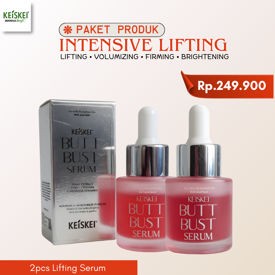Paket Intensive Lifting bekerja sebagai treatment booster dengan konsentrasi serum yang membantu menutrisi kulit lebih dalam, meningkatkan elastisitas, serta memperbaiki tampilan tekstur kulit. Penggunaan 2 pcs Lifting Serum secara rutin membantu area payudara dan bokong tampak lebih cerah, lebih kenyal, dan lebih berisi, sekaligus membantu menyamarkan garis dan stretch marks akibat perubahan berat badan, kehamilan, atau penuaan kulit.