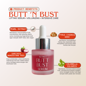 BUTT N BUST Paket Intensive Lifting adalah paket perawatan serum intensif yang diformulasikan khusus untuk membantu mencerahkan kulit, meningkatkan tampilan volume (pembesar visual), mengencangkan, serta membantu menyamarkan stretch marks pada area payudara dan bokong. Paket ini dirancang untuk Anda yang menginginkan hasil tampilan lebih cepat, lebih padat, dan lebih terangkat secara visual dengan perawatan terfokus menggunakan lifting serum.