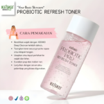 - Tuangkan KEISKEI Probiotic Refresh Toner secukupnya pada kapas atau telapak tangan