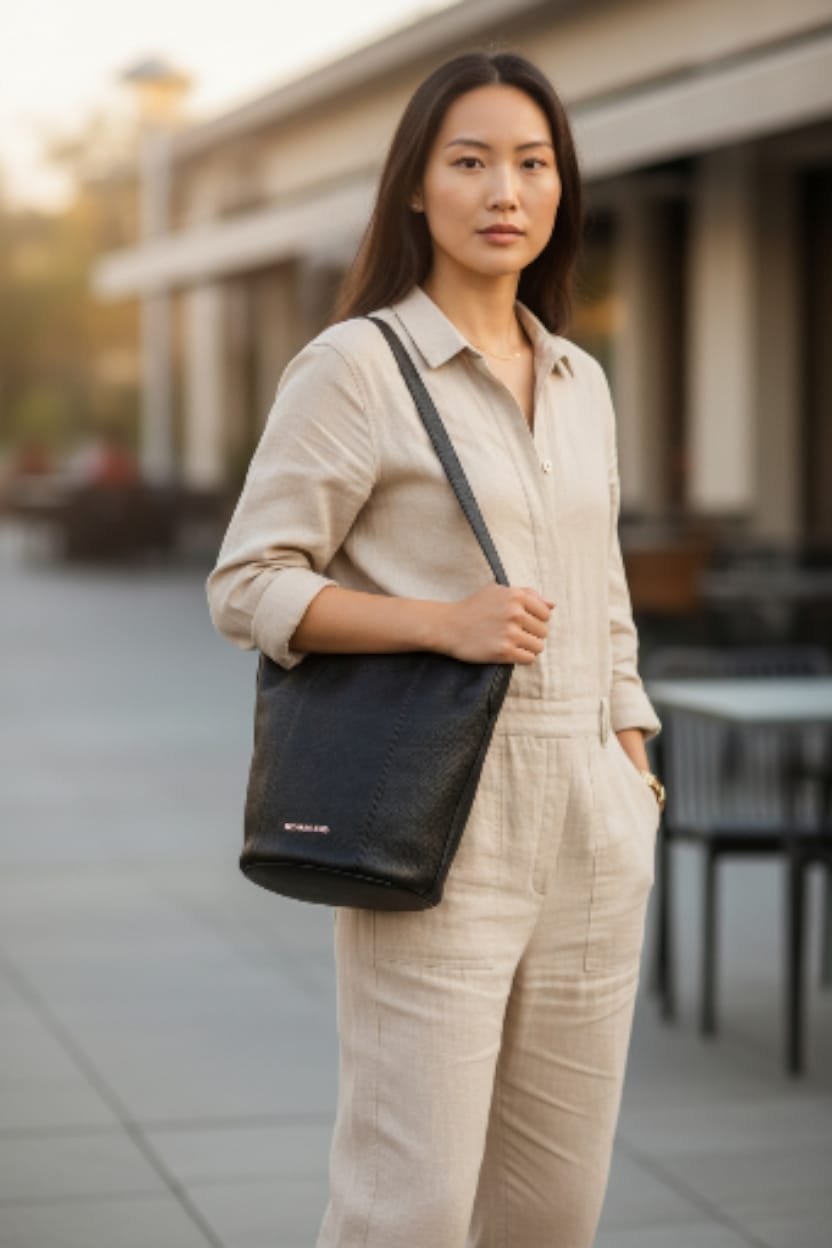 Tas ini tetap ideal untuk kamu yang ingin tampilan rapi di kantor, hangout, atau acara santai. Bentuk bucket messenger memberi ruang cukup untuk kebutuhan harian tanpa terkesan bulky.